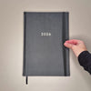 Met deze grote afsprakenagenda 2026 kun je geen afspraak meer vergeten. Deze A4 agenda met tijden heeft een harde cover met een stijlvolle en zakelijke uitstraling door de zwarte lederlook afwerking. Het jaartal 2026 op de cover is gedrukt in glanzende zilverfolie.